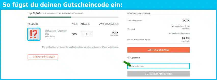 - Gutschein einlösen: Füge den kopierten Gutscheincode in das dafür vorgesehene Feld beim Checkout ein und klicke auf „Einlösen“. Der Rabatt wird dann automatisch von deinem Gesamtbetrag abgezogen.